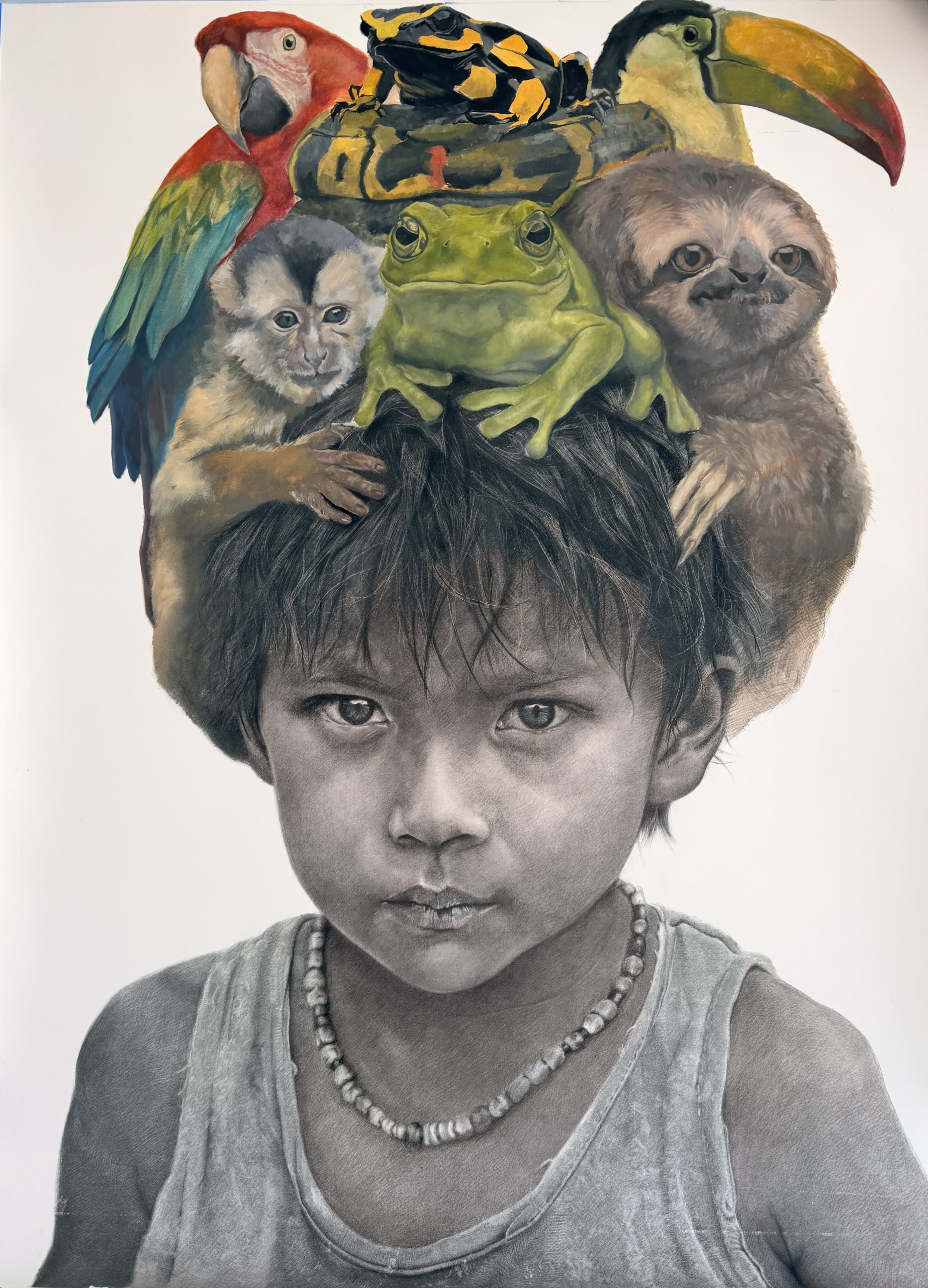 Un público complacido celebró la obra de la artista Manuela Echeverri que con gran maestría retrata la niñez negra en cuya cabeza bullen los papagallos, tucanes, ranas, osos y micos.